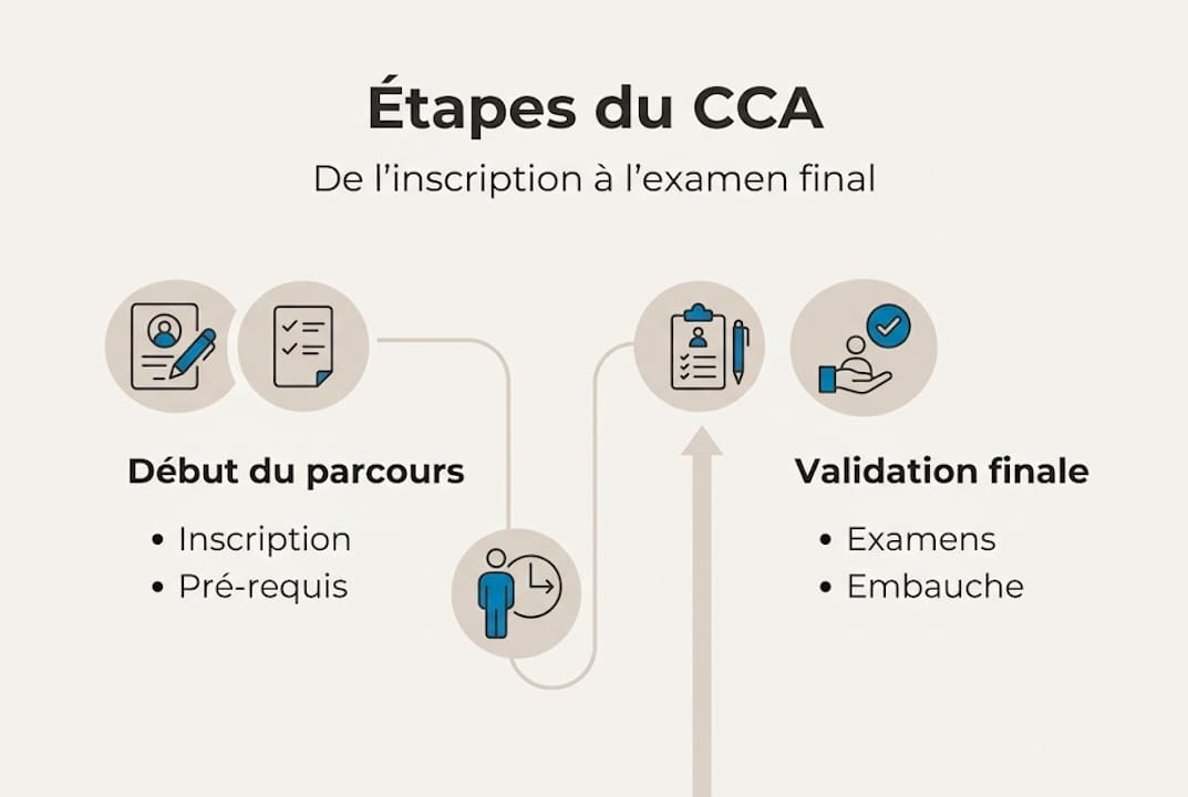Une fois votre formation choisie, vous devez suivre un parcours précis. Voici les étapes chronologiques pour obtenir votre CCA en 2026.