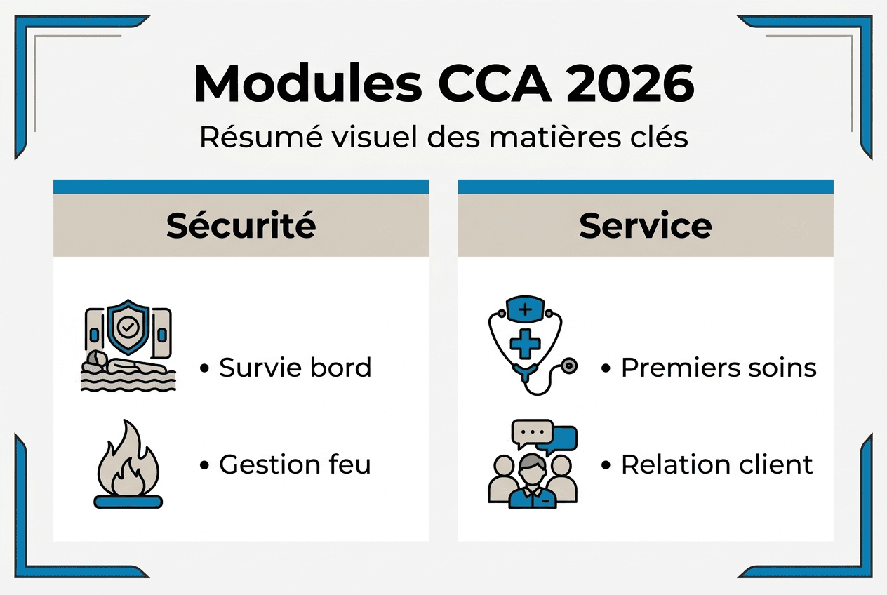 La voie d'accès au CCA varie selon les centres, mais la structure reste identique partout en Europe. La partie théorique dure généralement entre 100 et 140 heures, suivie de sessions pratiques intensives. Les candidats doivent réussir un examen final comportant un QCM et des mises en situation pour valider leur attestation.